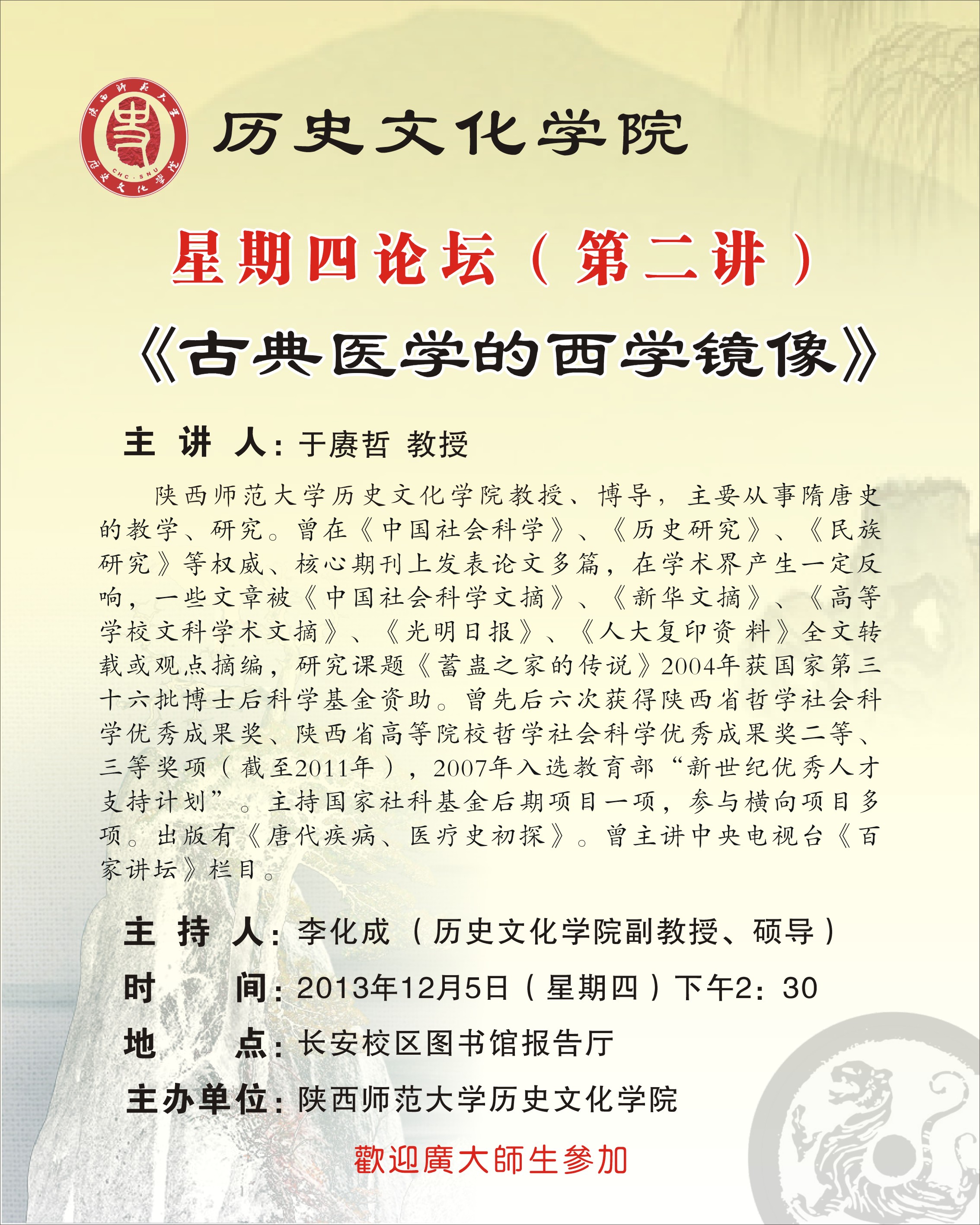 陝西師範大學歷史文化學院 2014年秋季學期中國古代史青年同仁学术沙龍