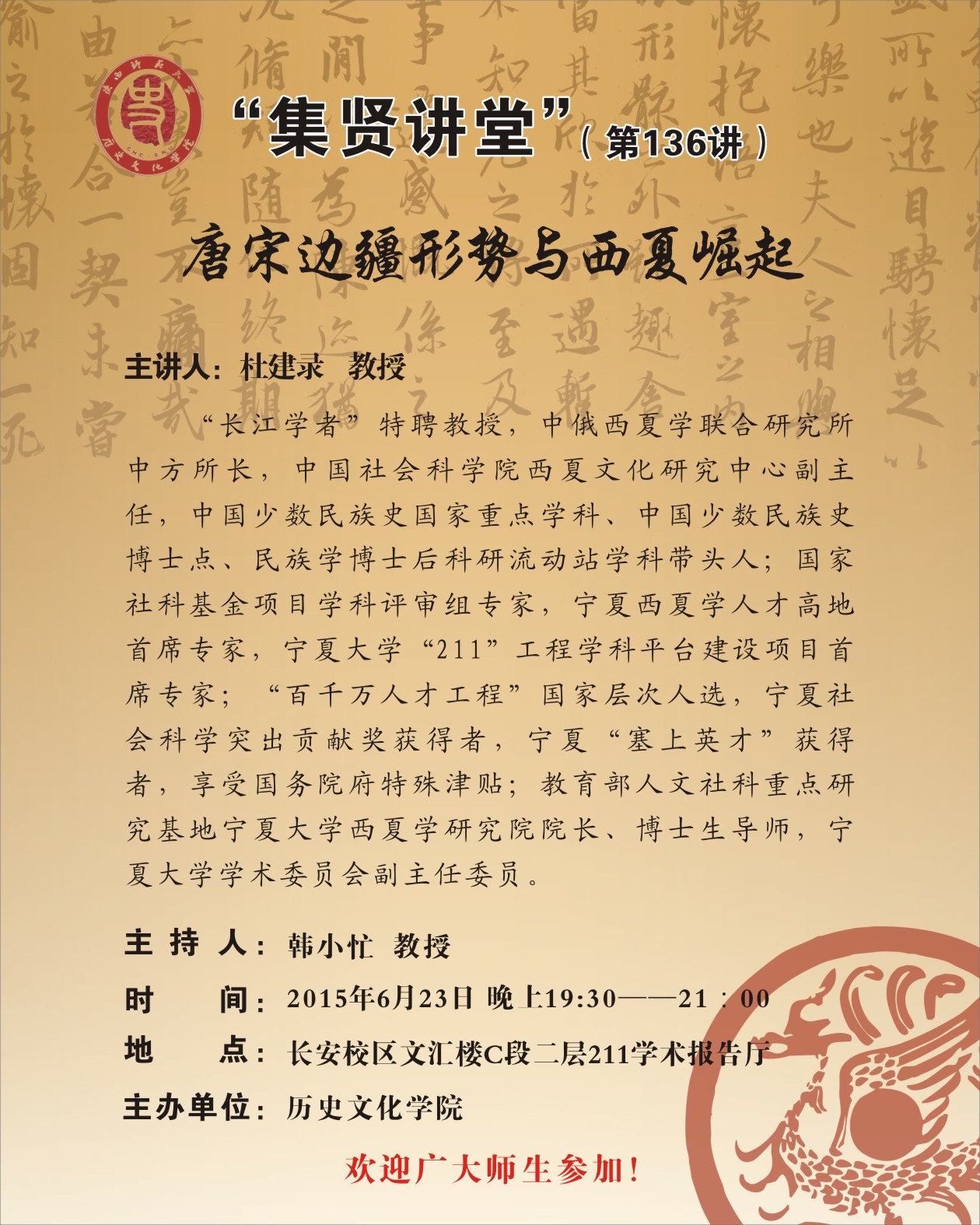 集贤讲堂第136讲:唐宋边疆形势与西夏崛起(杜建录)