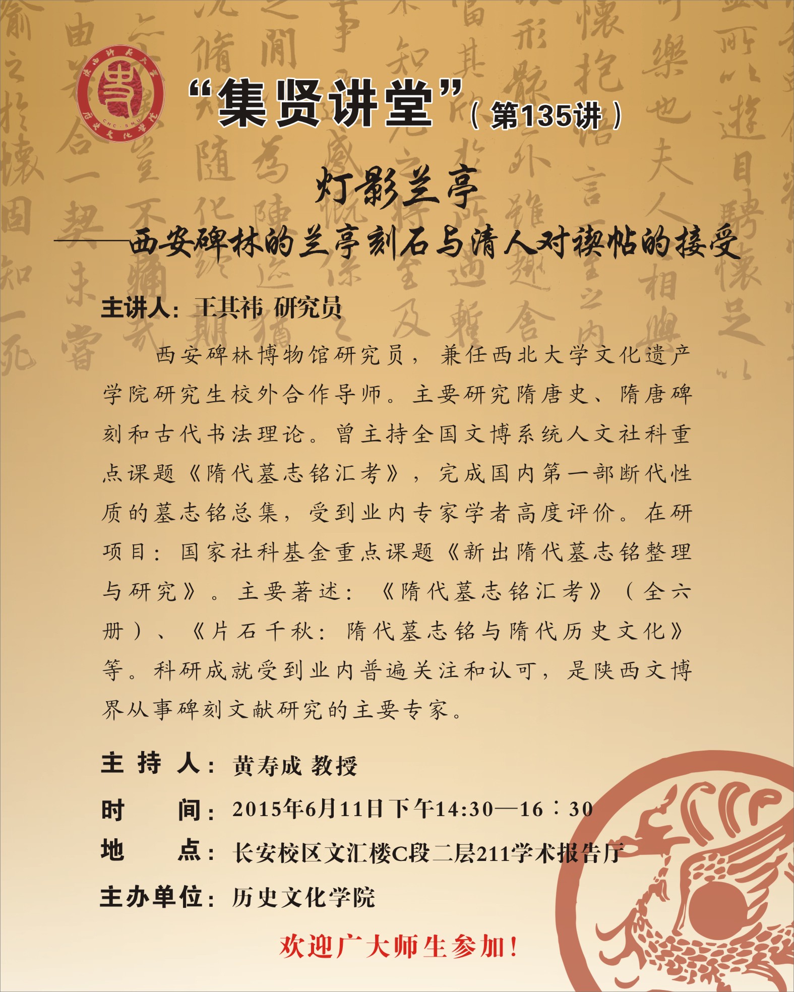 集贤讲堂第135讲:灯影兰亭——西安碑林的兰亭刻石与清人对禊帖的接受