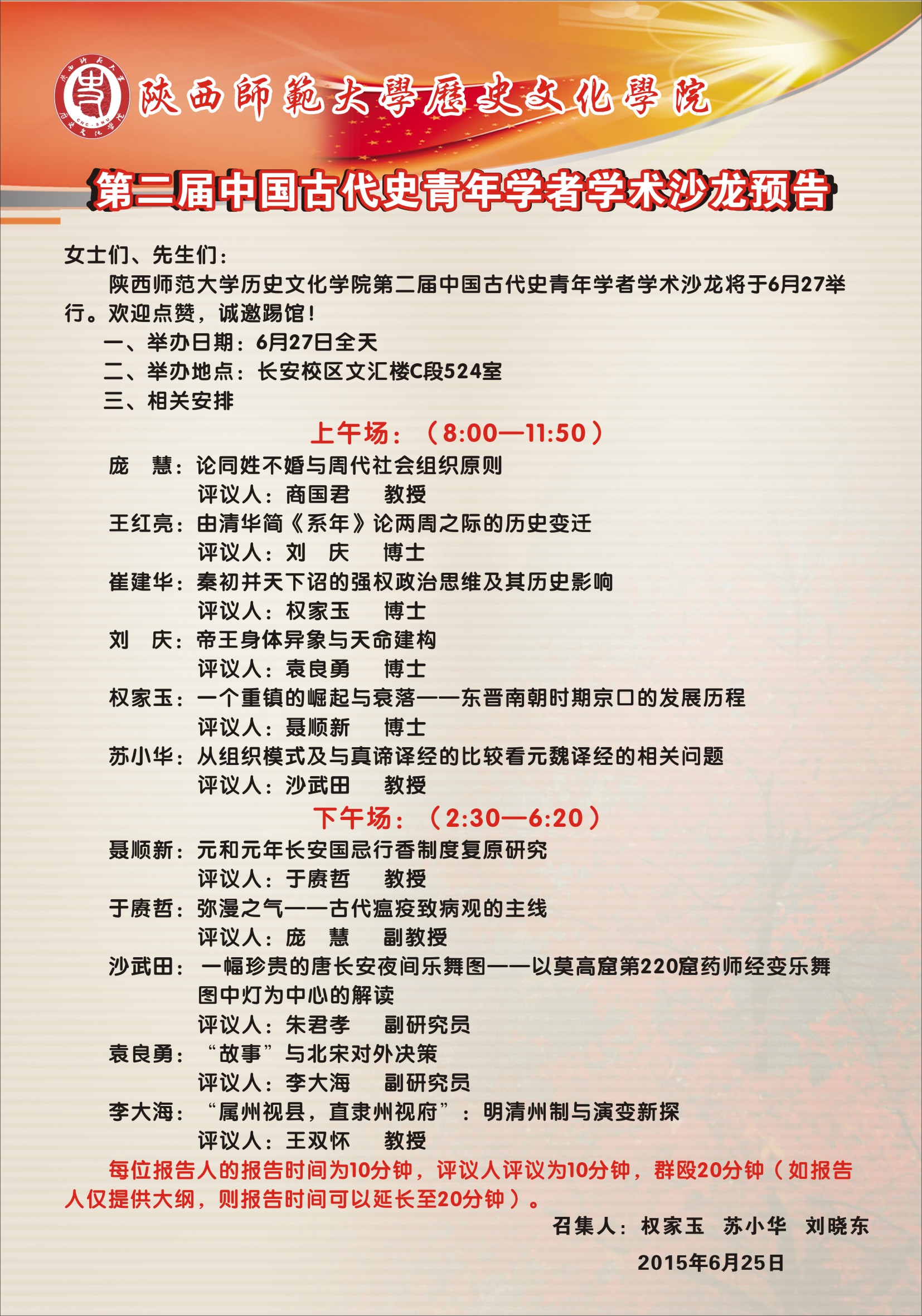 第二届中国古代史青年学者史学沙龙预告
