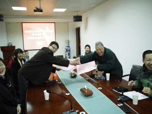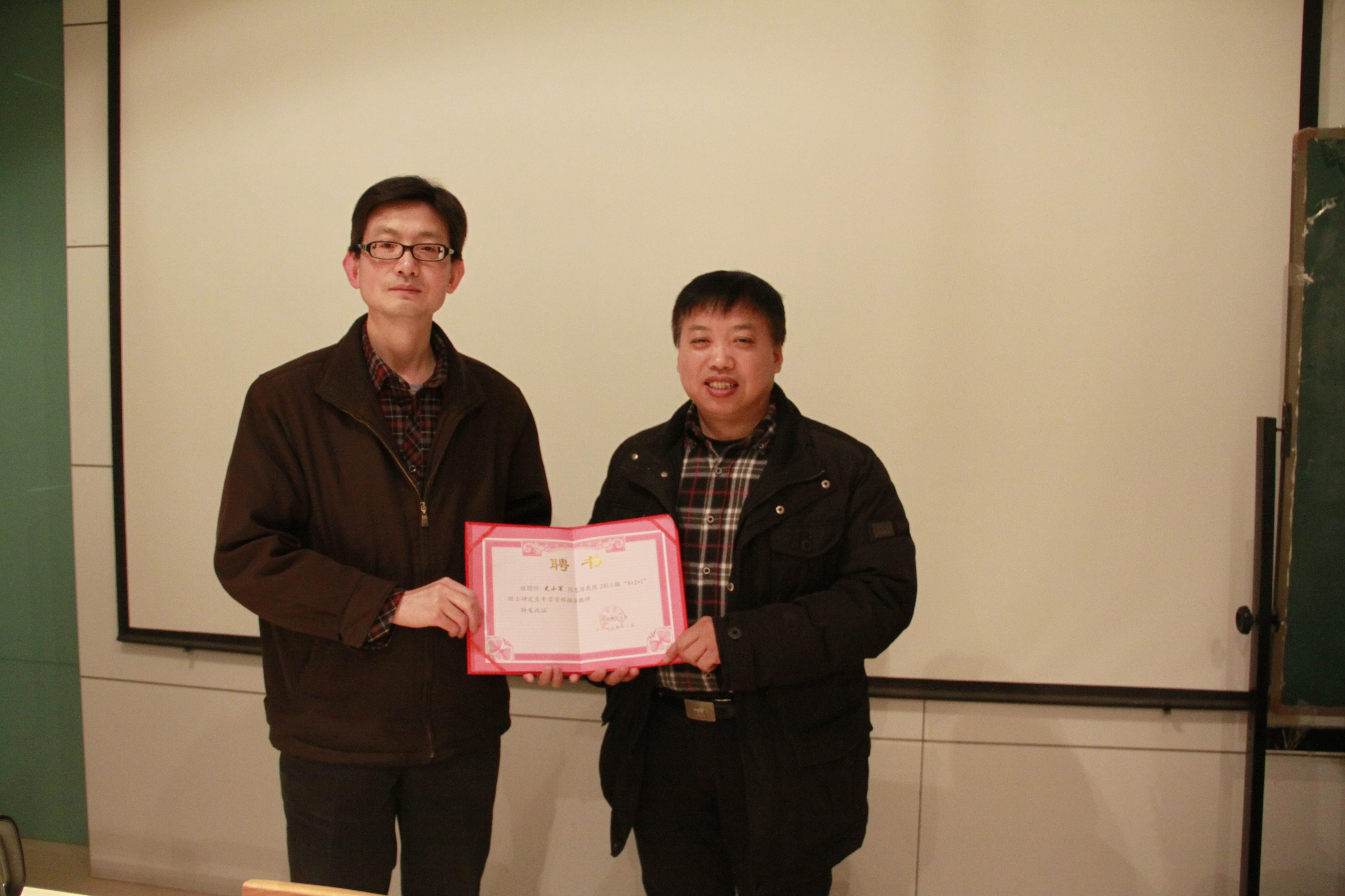 2013年12月24日下午,威尼斯官网在二层多媒体教室召开了13级“4+2+1”研究生中学学科指导教师聘任仪式暨座谈会,李秉忠副院长主持了整个活动。座谈会上,何志龙院长向13级4+2+1”研究生中学学科指导教师——史小军颁发聘书...