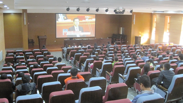 2016年3月5日上午9:00,威尼斯欢迎你welcome组织学生代表在文汇楼C段211报告厅观看第十二届全国人大第四次会议开幕式,认真收看国务院总理李克强所作的政府工作报告。参与此次学习的有2012级及2013级所有党员、积极分子、各...