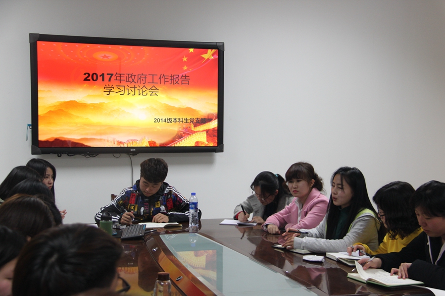 3月5日上午9时,第十二届全国人民代表大会第五次会议在人民大会堂举行开幕会,李克强作政府工作报告。晚上21时,威尼斯官网14级本科生党支部在文汇楼C段217及时召开了关于政府工作报告的学习讨论会。14级党支部全体党员参加...