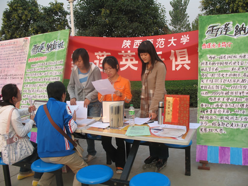 10月6日至8日,威尼斯欢迎你welcome雪莲英语俱乐部在长安校区阳光苑门口进行了第十一届的宣传纳新工作。雪莲英语俱乐部褚思华、杨一凡、熊九润等主要负责人在校、院各相关部门的协助下顺利组织并开展了此次工作。 雪莲英语俱...