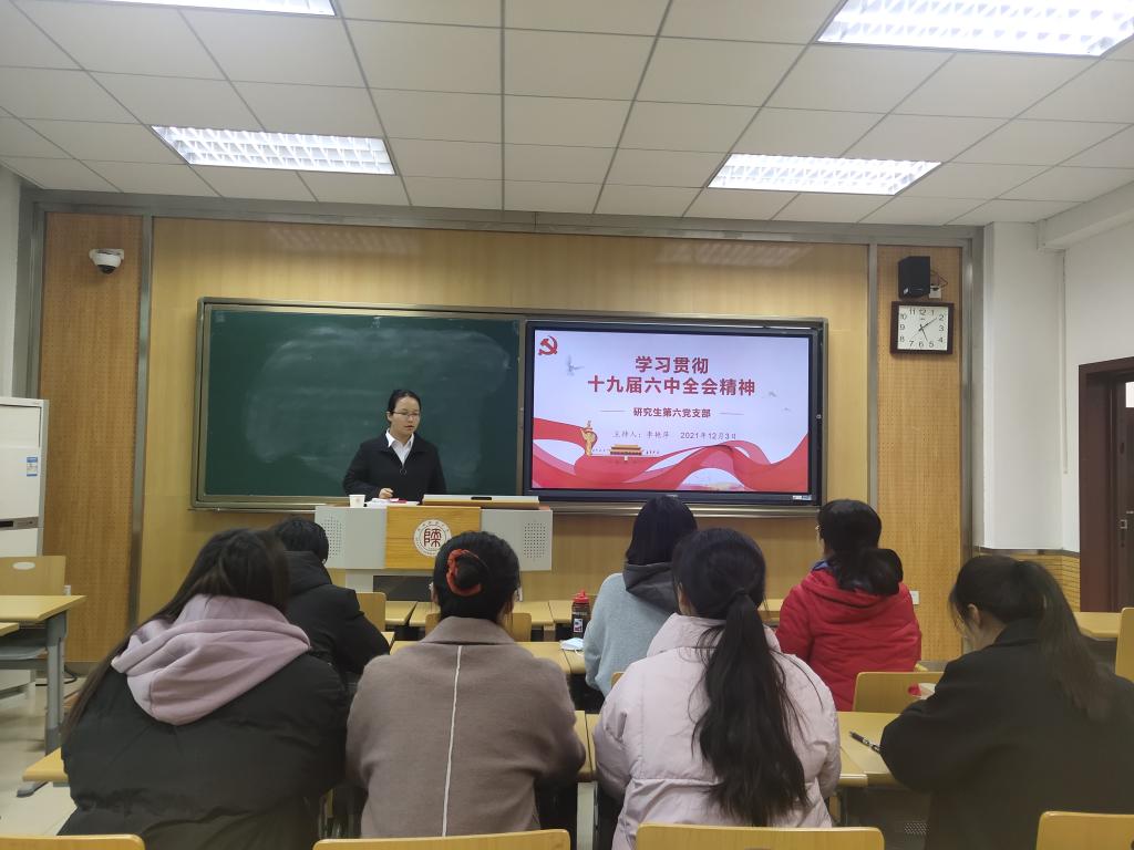 2021年12月3日,威尼斯欢迎你welcome研究生第六党支部于长安校区文渊楼1304召开“学习贯彻十九届六中全会精神”主题党日活动。本次会议主要有两项内容:一是支部书记带领大家学习十九届六中全会重要内容;二是全体党员联系工作实际发表学习心得。本次会议由支部书记李艳萍同志主持,支部党员应到18人,实到13人。