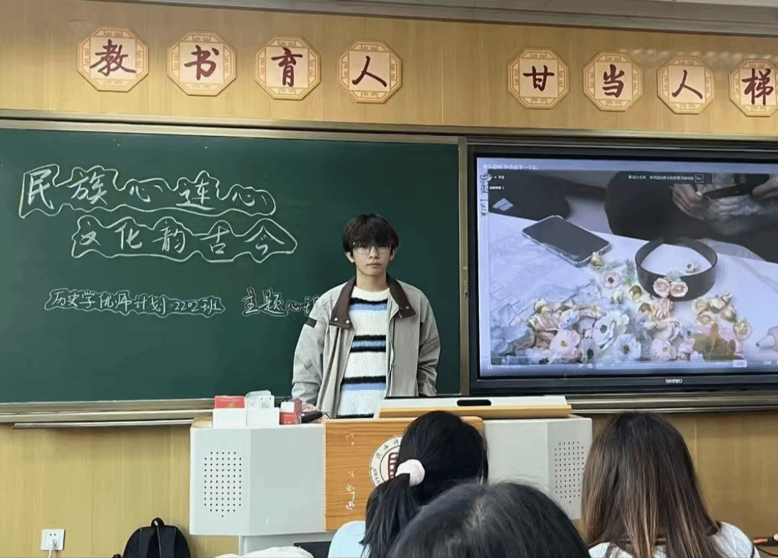 10月24日,2022级历史学(优师计划)2班团支部开展了“民族心连心,文化韵古今”主题团日活动。团支书组织支部成员观看相关教学视频,相互交流,分享创意,进行簪花和剪纸手工制作,不仅体验到手工制作的乐趣,更学习到剪纸与簪花背后的民族文化知识,增进对中华民族优秀传统文化的理解。