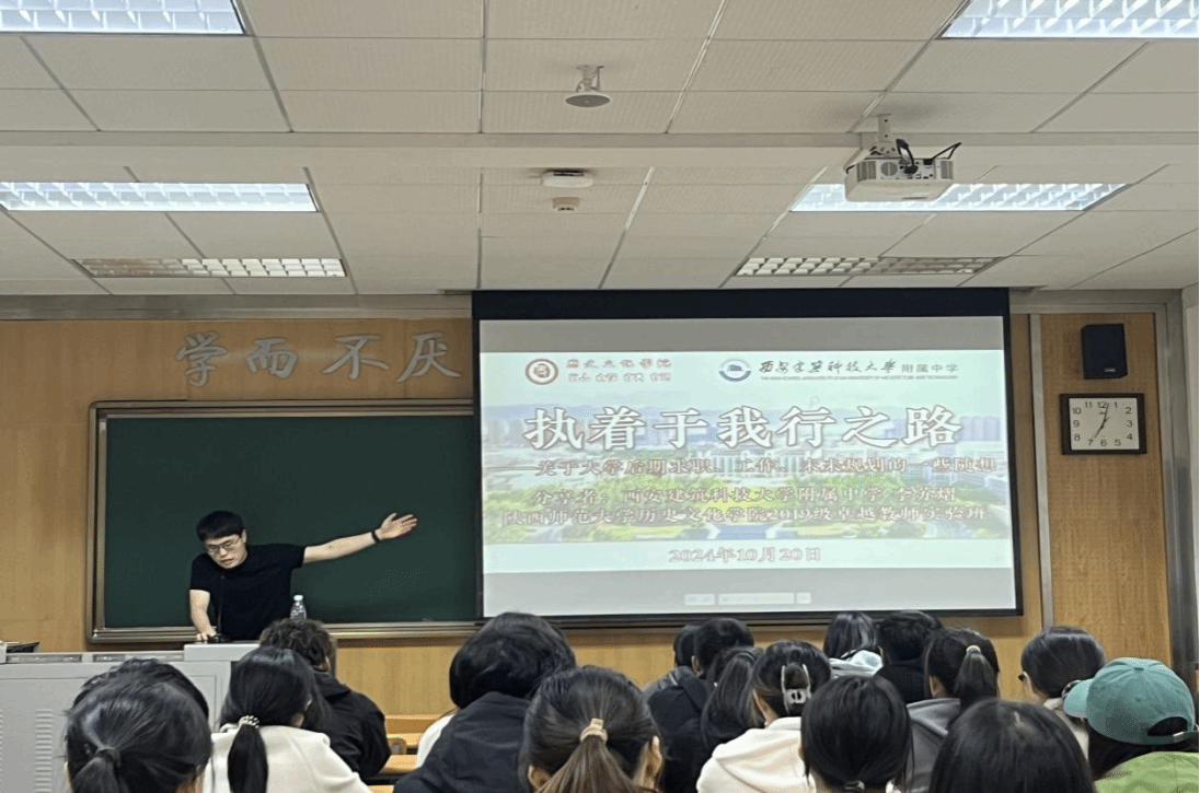 10月20日,2022级历史学(师范)班团支部开展“师范生实习与经验分享”主题团日活动。团支部邀请学院优秀的朋辈学长进行就业分享。学长向支部成员介绍自己的成长故事与求职经历,与支部成员们面对面互动交流,对提出的问题逐个作以耐心的解答。此次团日活动从未来职业选择、教师类求职渠道、面试建议、备课经验、入职建议等几个方面展开详细的分享。支部成员不仅更加深入地了解到未来职场环境和职业发展路径,也感受到了来自学长的关怀和支持,更加明晰怎样提升自己的就业竞争力,找到自己的职业目标和发展方向,为未来职业发展奠定了坚实的基础。