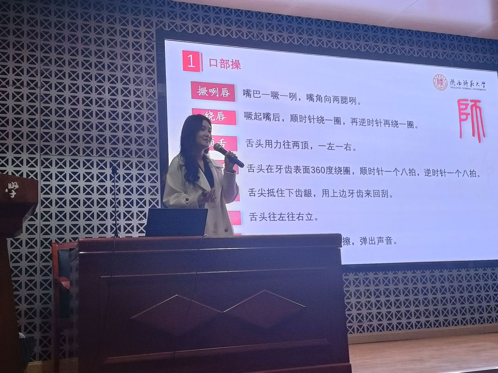 第一期活动以“基础发声训练——让声音成为感染力工具”为主题,“西安晚报”新闻主播裴江华以朗诵艺术与发声技巧为核心,教授学员如何通过气息控制、语音语调优化增强表达感染力,帮助学员掌握“声入人心”的底层逻辑,为后续表达训练奠定基础。