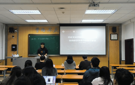 随后靳璐萱同学为大家带来了《百家争鸣》一课,两位老师同样针对靳璐萱的课件设计、课程内容等问题指出了靳璐萱同学的课堂中存在的不足之处。