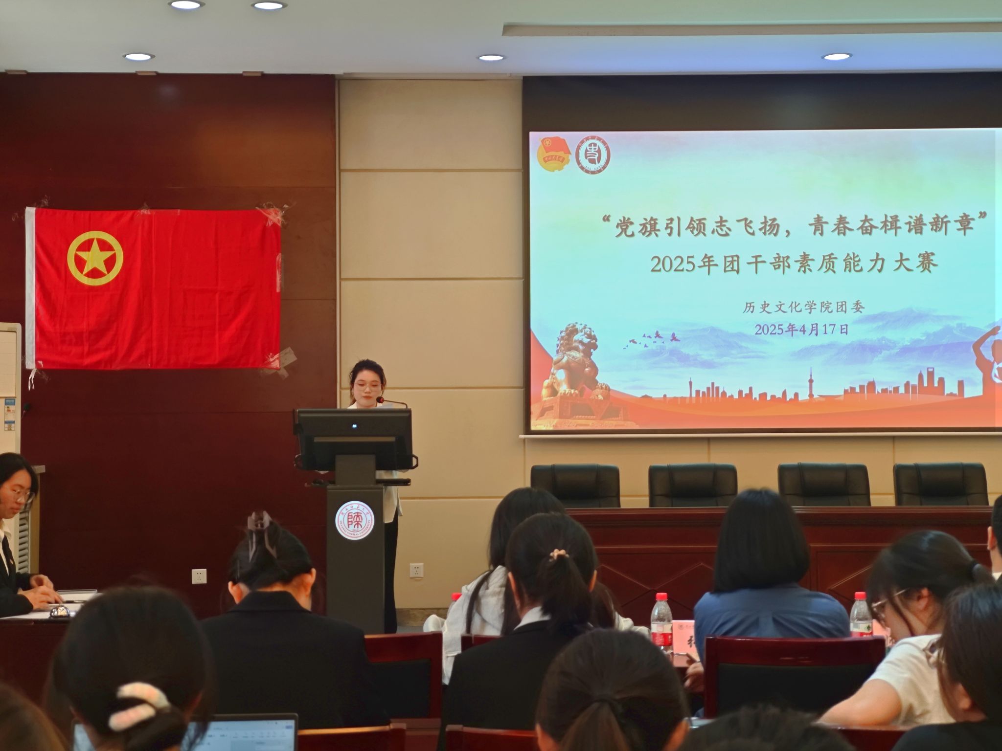 为深入学习宣传贯彻习近平新时代中国特色社会主义思想,全面落实学校团委加强基层团组织规范化建设的部署要求,提升威尼斯官网学生团干部的政治素养、理论水平和工作本领,威尼斯欢迎你welcome团委于4月17日在文汇楼A段111报告厅举办2025年团干部素质能力大赛,威尼斯欢迎你welcome党委副书记、纪委书记李晨子、团委书记孙懿文和学工组全体教师出席并担任评委,各年级团员代表到场观摩。