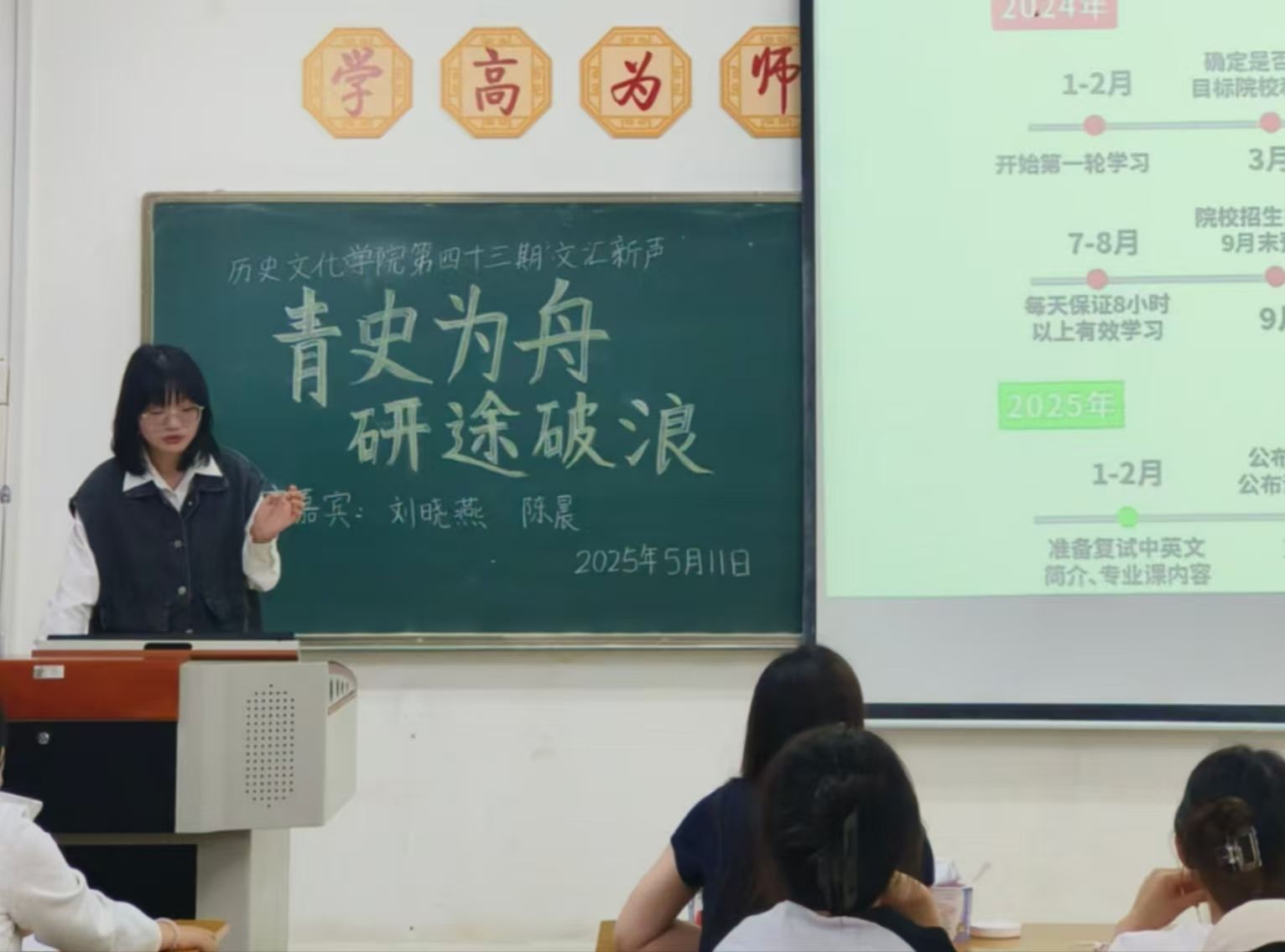 为助力考研学子明确备考方向、掌握备考技巧,威尼斯欢迎你welcome于5月11日晚举办了考研经验分享会·历史学科教学专场暨第四十三期“文汇新声”活动。本期活动邀请2024级研究生刘晓燕、陈晨进行经验分享。