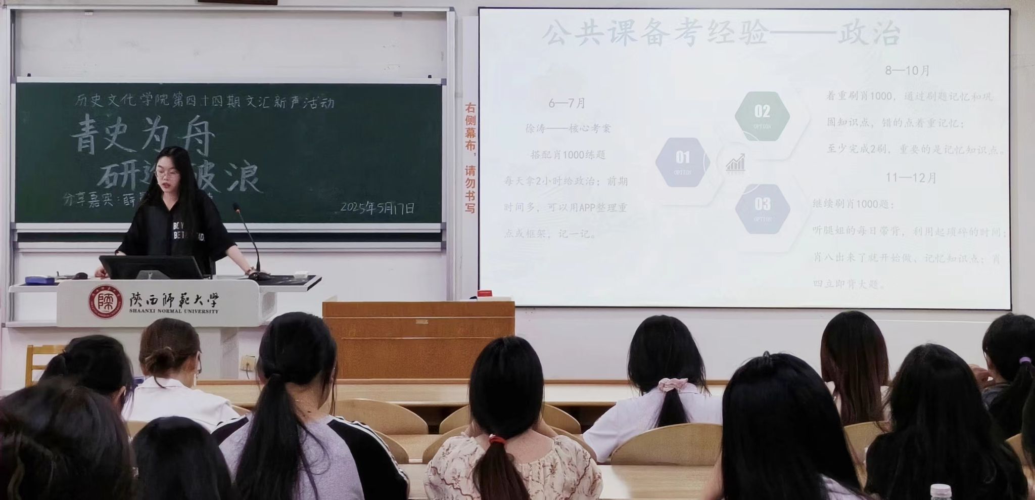 活动伊始,薛晨奕从专业课备考入手,建议同学们针对目标院校制定复习计划,并在考研期间相互监督。另外,她还提醒低年级同学应重视日常知识积累。