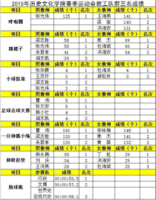 2015年威尼斯欢迎你welcome春季运动会教工队前三名成绩