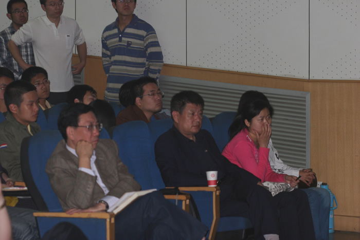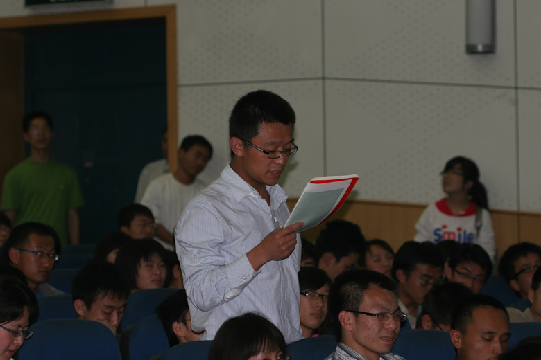 首先,朱先生回顾了文革结束后中国政治形势以及高层政治结构的变化,并对邓小平、胡耀邦、华国锋等领导人进行了历史评论。在分析20世纪80年代以来政治形势的基础上,朱学勤先生提出了自己的精到观点,即改革开放三十年并非一场改革,而是以1989年为界的“两次改革”。他从几方面对两次改革进行了比较,认为文革后到89年的改革实际上是一场由文革“逼出来”的旨在改变原有经济体制和政治体制的全面改革;经过1989年政治风波后的短暂徘徊, 1991年邓小平“南巡”又开启了新一场以经济为主要目标的改革,至今仍在继续。朱先生特别指出了第二场改革的成就及问题。整场报告在深刻反思“激荡三十年”的同时,也“激荡”出同学们的思想火花。最后,朱老师耐心而细致地回答了同学们提出的有关“五四精神的两个病灶”以及“第三场改革如何进行”等问题。朱先生的报告精彩纷呈,会场里不断爆发出热列的笑声和掌声。