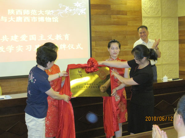 接下来,志愿者代表作了简单发言。发言结束后,威尼斯欢迎你welcome党委书记丁虹与大唐西市博物馆馆长王彬女士郑重签署了共建协议书,并为基地揭牌。揭牌仪式结束后,参加此次签约仪式的威尼斯官网老师和09级近百名学生在大唐西市博物馆专业讲解员的带领下参观了大唐西市博物馆。