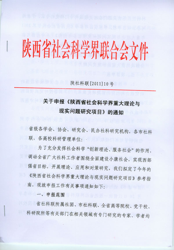 关于申报《陕西省社会科学界重大理论与现实问题研究项目》的通知