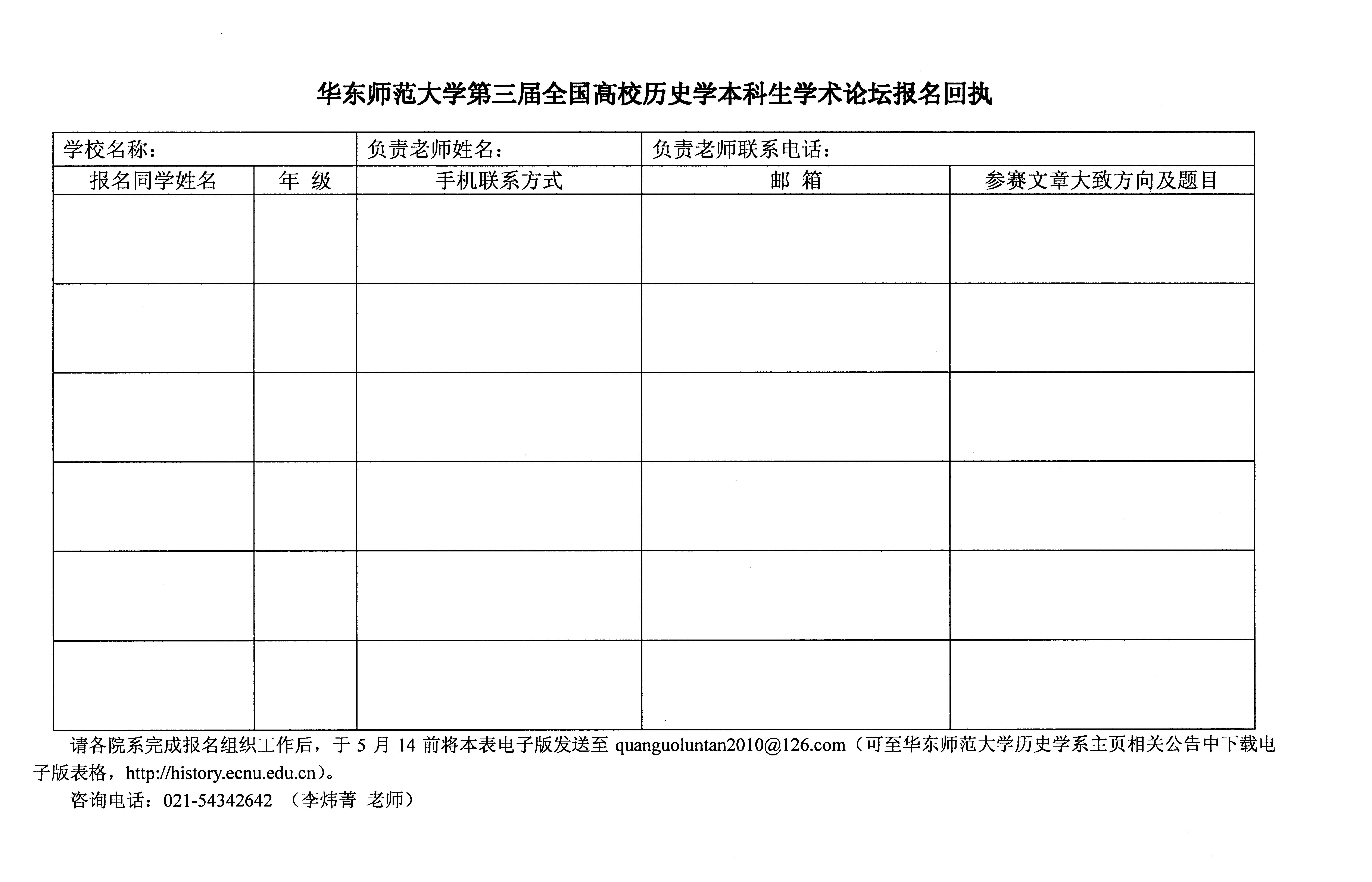2011年夏令营暨第三届全国历史学本科生学术论坛将于2011年8月下旬在华东师范大学举行,营员招募暨征稿活动自即日启动。具体事项如下: