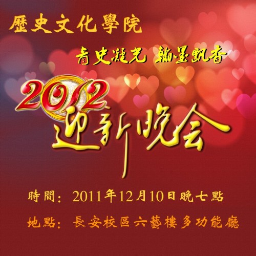 威尼斯欢迎你welcome“青史凝光,翰墨飘香”迎新晚会定于 2011年12月10日晚七点在长安校区六艺楼多功能厅举行,欢迎大家前来观看。