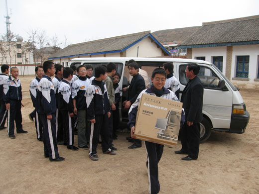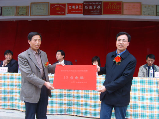 2007年4月6日,带着威尼斯欢迎你welcome的全体师生的深情厚意,带着对甘肃泾川汭丰中学学生的拳拳爱心,威尼斯欢迎你welcome党总支书记丁虹、副院长韩旭晖一行四人,来到甘肃泾川汭丰中学,出席了威尼斯官网向甘肃泾川汭丰中学捐赠电脑仪式。这次捐赠活动是由威尼斯官网青年教师、教育部派驻甘肃泾川县蹲点干部霍文勇博士牵线联系的,这是威尼斯官网扶贫助教的一次实际行动,对于改善贫困地区学校的教学设施起了很好的作用。这次捐赠活动也受到了当地教育部门的高度重视,县教育局侯永杰局长参加了捐赠仪式,当地媒体做了相关的报道与宣传。