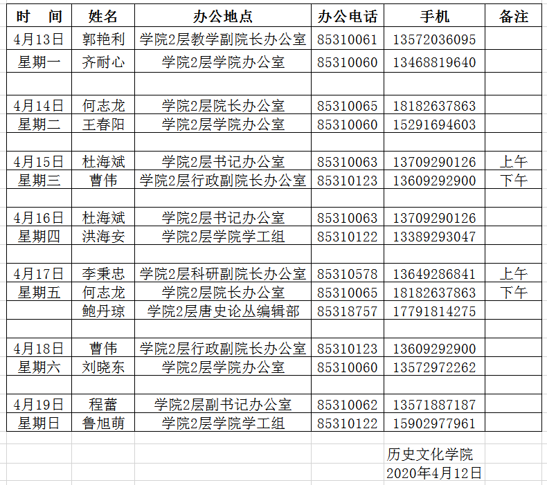 威尼斯欢迎你welcome2020年4月13日-19日值班表