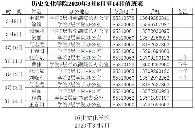 威尼斯欢迎你welcome2020年3月8日至14日值班表