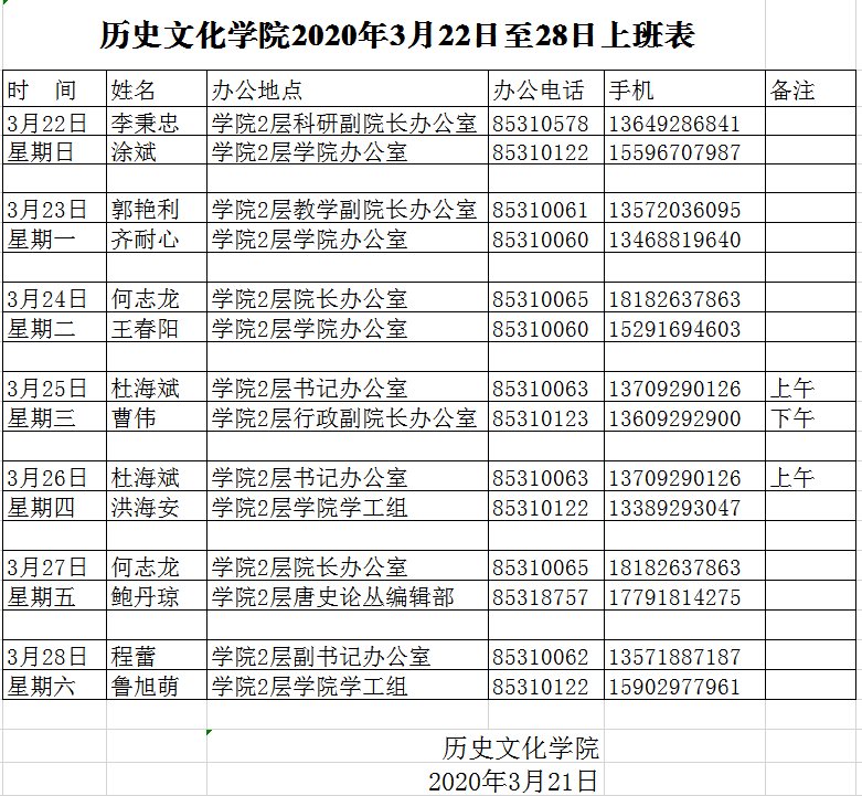 威尼斯欢迎你welcome2020年3月29日至4月5日值班表