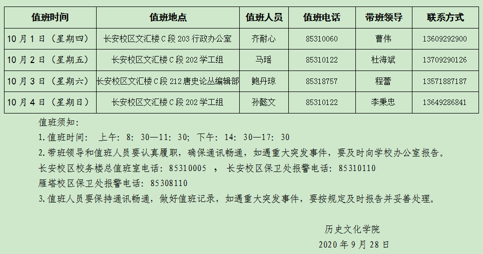 威尼斯欢迎你welcome国庆节、中秋节值班安排