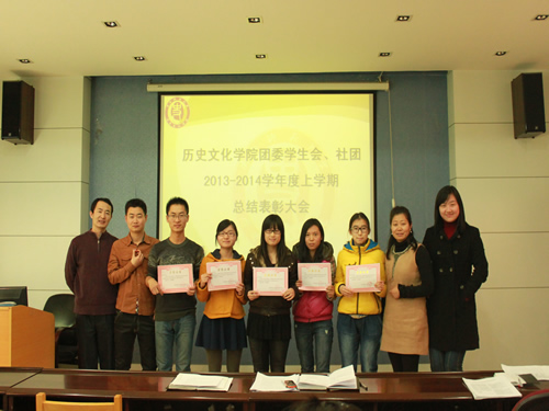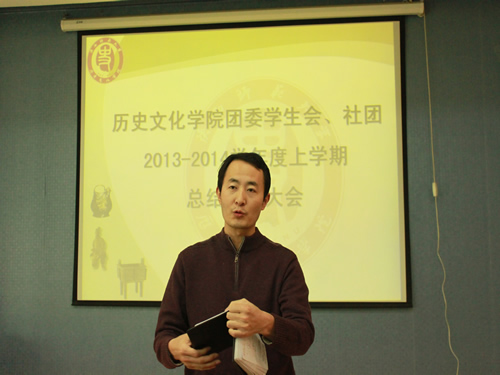 会议由学生会主席陈龙同学主持,团委、学生会各部门首先做了本学期的工作总结以及下学期的工作设想,随后青年志愿者协会、杏园史学社、雪莲英语俱乐部和人文景观考察学会也分别向大家汇报了本学期的工作总结。接着洪海安宣读本学期获得先进个人的表彰名单。在颁奖结束后,柴永昌做了简短的总结发言,对团委、学生会、和学生社团一学期的工作给予了充分肯定,同时也指出了工作中存在的不足。他希望通过学期末的工作总结,使各部门、各社团进一步加深对各自工作职责的理解,总结经验,寻找不足,在继承各自优良传统的基础上不断创新,树立一部一品、一社一品的工作理念,同时不断提升自身工作能力和水平,为进一步更好地践行职责,更加有效地开展工作打下基础。