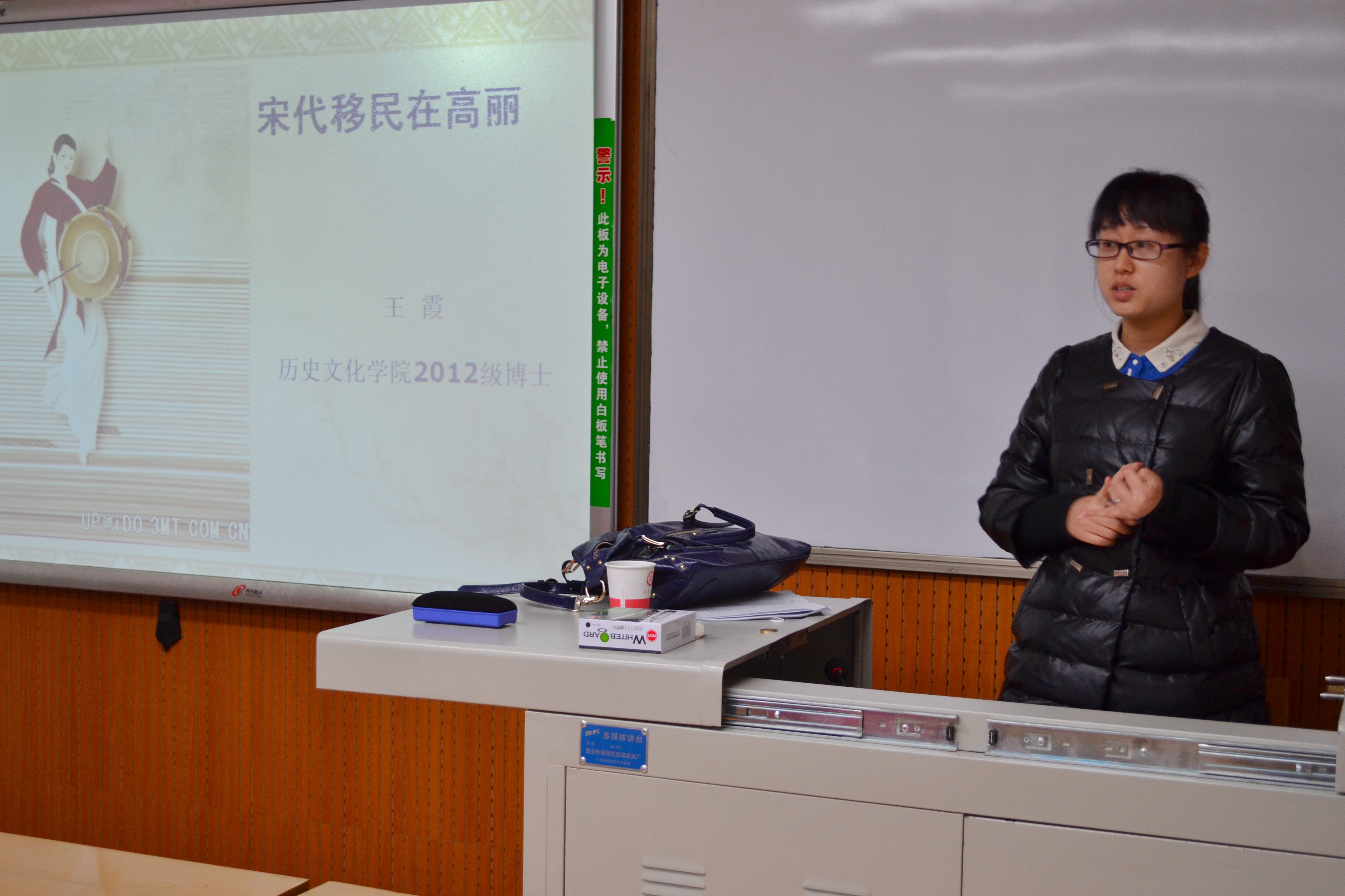 2014年11月23日晚7点,威尼斯欢迎你welcome研究生会日新论坛第83讲在长安校区文津楼513教室顺利举行。本次讲座由2012级专门史王霞博士担任主讲,主讲题目为“宋代移民在高丽”。学术部贾尖全抓西主持,威尼斯官网部分研究生积极参加了此次讲座。
