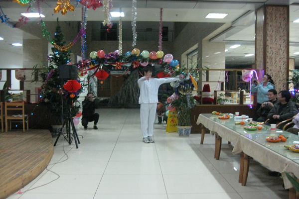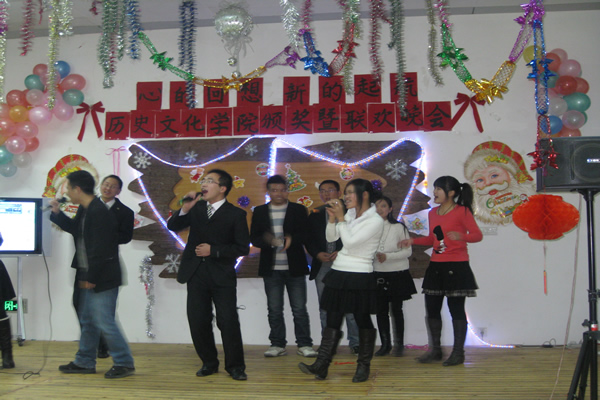 19时,韩老师致完开幕词后,晚会在动感、火辣的舞蹈中拉开了帷幕,三位同学青春活力、魅力四射的劲舞表演将场上的气氛一下子推向了高潮,欢呼、雀跃把大家带入了共同的狂欢,接下来三位女生甜美悦耳的歌声让大家陶醉在青春美好的回忆中。而一段轻快灵动的哈萨克舞蹈却让大家感受到了不一样的民族风情。研究生学长的武术表演则展示了中国男儿的铁骨铮铮,赢得了大家阵阵呐喊和掌声。幽默的小品“应聘”在轻松、诙谐中揭示了当代大学生的就业压力。唯美的男女对唱则把大家带入了美丽的“神话”。而热情洋溢、激情四射的歌曲串烧让大家在那个自己的舞台上一展风采。节目的最后,李亚平老师、袁良勇老师也为会场的气氛所感染,一展歌喉,杜海斌老师也与大家一起同台演唱,会场上的气氛此起彼伏,所有人都热情洋溢。