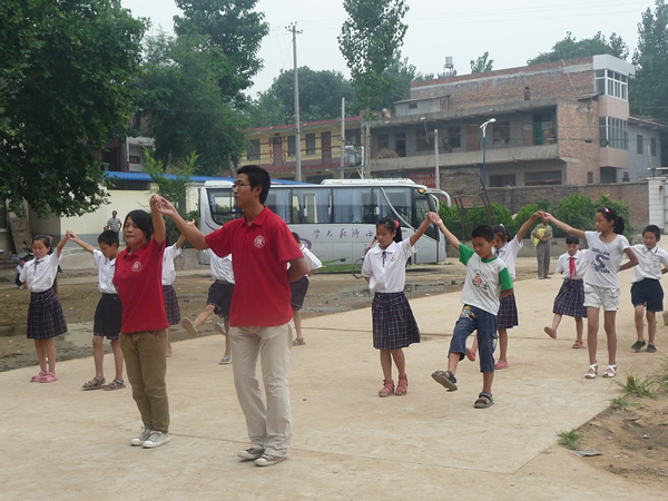 7月17日上午十一时,威尼斯欢迎你welcome“彩虹桥”暑期支教实践活动(以下简称“实践活动”)在渭南市华县高塘镇北村中心小学举行以“让爱延续,让梦想绽放”为主题的汇报演出。华县教育局高炜,高塘镇北村中心小学校长张艳,威尼斯欢迎你welcome团委书记柴永昌出席本次汇报演出,2009级本科生辅导员孙巍、2010级本科生辅导员洪海安和参加本次实践活动的志愿者同学们齐聚一堂,共度美好时光。
