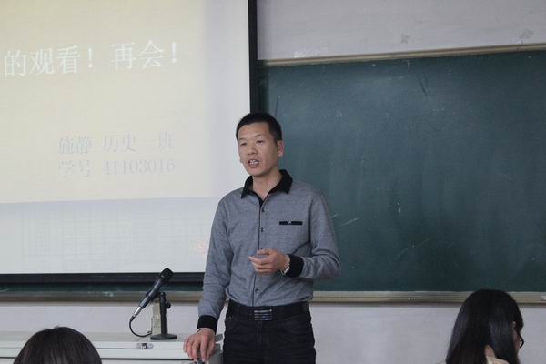本次决赛由学生会师范部祝唯雪同学主持,比赛开始前,柴永昌老师向各位同学介绍了评委老师并对参赛选手提出了殷切希望,比赛正式开始,11级博物馆专业王焕君、历史学1班穆仁萱、历史学2班李晗等13位同学依次登台进行了精彩的讲课。期间每三个同学为一组,由一位老师进行点评。同学们在讲台上展现了自己的良好风貌,老师们在肯定同学们良好表现的同时也向同学们提出意见和建议。