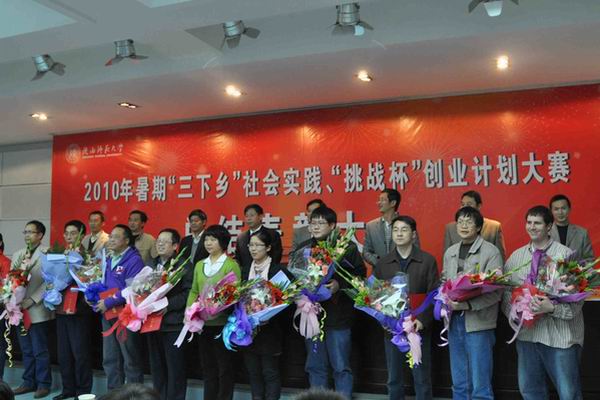 2010年11月5日下午,陕西师范大大学2009-2010学年暑期“三下乡”社会实践、“挑战杯”创业计划大赛总结表彰大会在雁塔校区崇鋈楼学思堂隆重举行。校党委副书记、副校长王涛、校团委书记鲁镇、副书记祁斌业、副书记蒋毓新等学校领导出席本次大会。会议由校团委书记鲁镇主持。