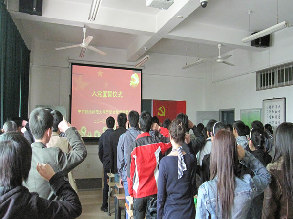 “我志愿加入中国共产党……永不叛党”,熟悉的誓词,熟悉的场景让我们似乎回到了曾经的岁月,庄严地誓言让我们心潮澎湃,久久不得平静。之后新老党员代表分别作了发言,希望每一位新党员牢记誓词,履行党员的义务,做一名合格的党员。入党宣誓仪式最后丁书记作了重要讲话,她强调新党员要不断学习,努力提高自己,在学习、生活、工作等方面作同学们的表率,努力做一名优秀的党员。