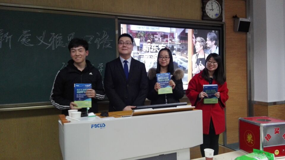 最后,秦老师就新东方与我校合作班的课程体系、任教教师、上课流程等情况做了简要介绍,并对在场学生进行现场抽取幸运听众,赠送柯林斯字典活动。讲座结束后,秦老师与同学们展开对话交流,逐一解答同学们关注的问题。此次讲座的举办,不仅为广大英语爱好者提供了交流平台,而且进一步激发了大家的英语学习兴趣,为大家更好地学习雅思口语,提高口语能力技巧提供了有效帮助。