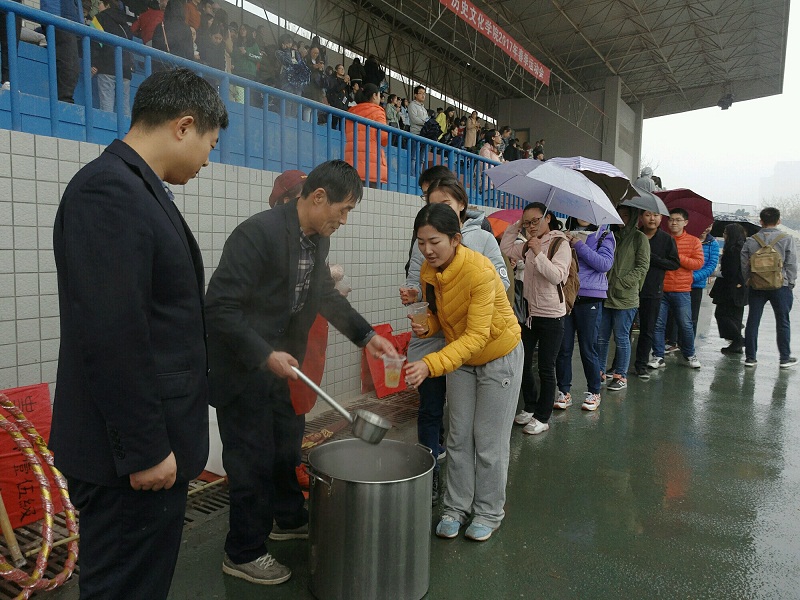 天下小雨,气温偏低,比赛依旧进行,学校后勤第一集团闻讯冒雨赶来,为师生们送上了一杯杯暖手暖心的姜汤驱寒,大家井然有序地排队领取姜汤,并对师傅们表达浓浓谢意。下午六点左右,运动会各类比赛项目顺利进行完毕。闭幕式上,党委副书记程蕾和团委书记洪海安等人给个人项目和团体项目优胜的同学们颁奖,并对他们表示祝贺。最后,党委副书记程蕾向运动员以及运动会的工作人员表示感谢,并希望全体同学加强体育锻炼,以饱满的精神状态投入到以后的学习和生活中,为未来打下基础。至此运动会圆满闭幕。