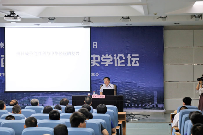 7月12日上午,第十一届“西部大讲堂•历史学论坛”第五讲在雁塔校区崇鋈楼学思堂开讲。本场是中国近现代史专题报告,报告题目为《抗日战争的胜利与中华民族的复兴》,由著名民国史学家、中国社会科学院世界史研究所研究员、副所长汪朝光主讲,威尼斯官网黄正林教授主持。