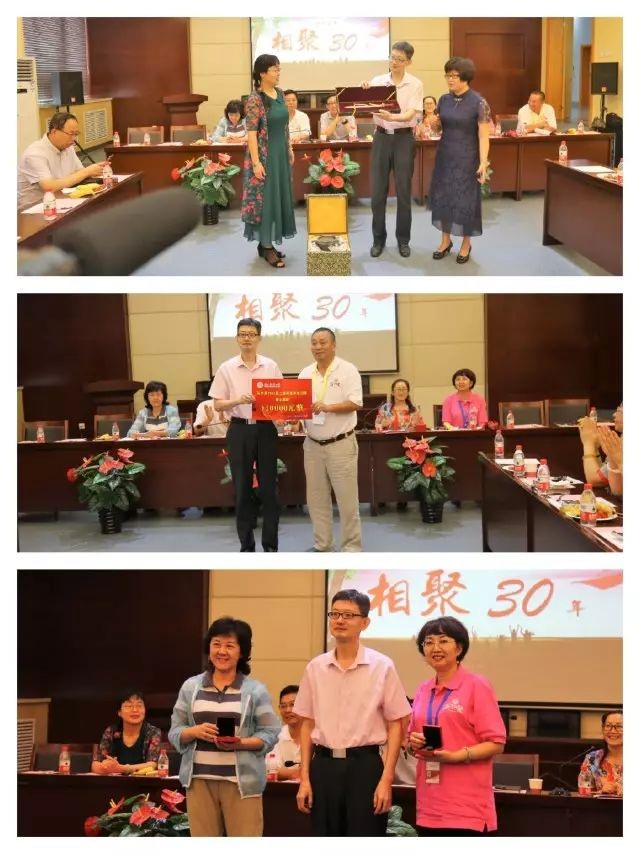 为感恩母院培养,87届1班校友为学院赠送青铜壶和青铜剑文物,2班校友为学院捐赠一万元爱心善款。学院同样为每位校友定制了纪念礼物,一枚蕴意丰富的水晶印章,印章中间篆刻着学院院徽和院训,印字为每一位87届历史系毕业生的同学姓名,小小的礼物寄托了学院对校友们的思念之情。最后,轻松愉快的联谊活动在全家福的大合影中欢乐结束。
