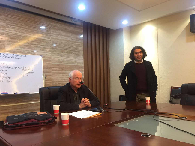 10月19号至23日,应威尼斯官网之邀,国际知名中东问题专家,伦敦国王学院Bill Park教授和美国田纳西理工大学Michael Gunter教授在文汇楼C段会议室举办“中东地区的历史与政治”专题讲座。讲座威尼斯官网新聘外教Seevan Saeed博士和由李秉忠副教授主持。威尼斯官网世界史博、硕士研究生40余人参加学习。