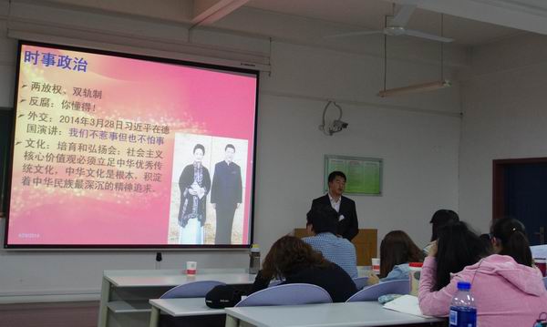 此次活动首先由李亚妮和于永洋介绍了此次邀请的嘉宾,然后奏共青团歌,由李亚妮介绍大学生志愿服务网上认证系统的相关事宜。接着由于永洋对3月以来的时事热点做了简明扼要的介绍,以此号召同学们关注时事政治和生活,关注国家与自我的关系。之后,进入此次活动“为学·为人·为师”的主题,辅导员张志祥先讲了自己对诚信的看法,告诫同学们诚信考试和做学问,杜绝作弊和抄袭,并澄清了其中的利害关系。为了避免抽象的讲诚信问题,由于永洋带领大家一起了解和体验对“为学”与“为人”的。先贤们认为“为人不易,为学实难”,“为学”与“为人”是统一的,做学问是为了做人,通过做学问把一个人生命中最核心、最本质的东西表现出来。中国作为一个垂训社会,所谓“经师易遇,人师难遇”,“学高为师,身正为范”。因此,教师要具备过硬的学品与人品,以自己的“言”和“行”教化学生,为社会树立楷模。