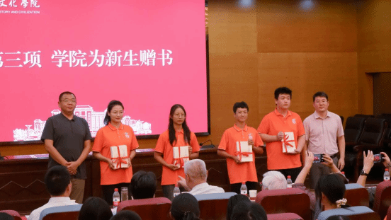 副院长冯立君教授与学院党委副书记、纪委书记、副院长李晨子老师代表学院向新生赠送书籍,以此勉励同学们用知识武装自己,怀抱赤子之心,激扬奋斗之帆,续写新时代威尼斯欢迎你welcome学子的崭新篇章。
