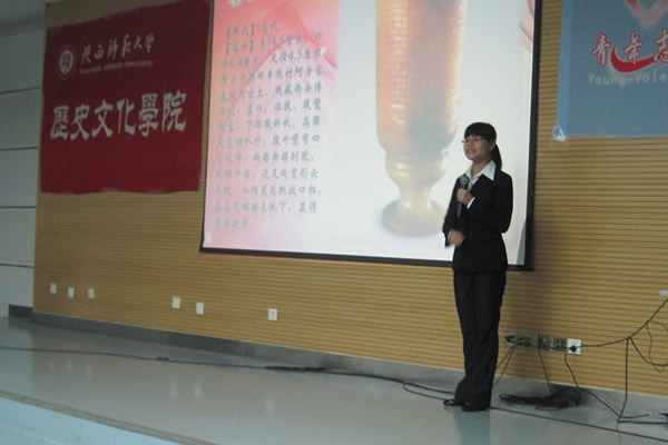 接着,陕西历史博物馆宣教部部长步燕老师也在开幕式上致辞。她对同学们不求回报的为志愿服务事业付出与奉献表示感谢,同时还指出,陕西历史博物馆正在努力搭建志愿者网络平台,为志愿者们提供交流的平台。随后,2008级历史专业学生包希悉也代表志愿者发言,表示了在志愿服务中进一步锻炼自我、提升能力的决心。