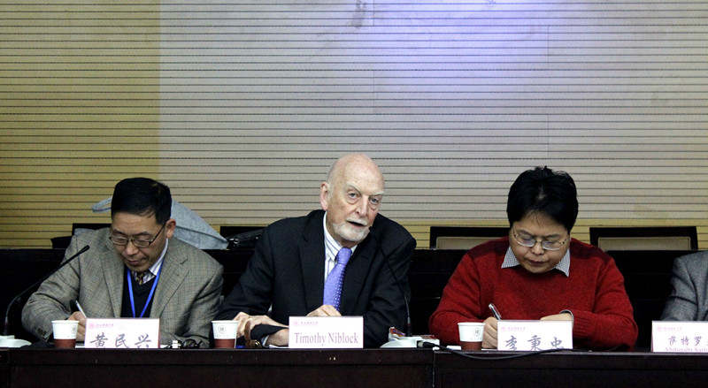 14日上午,大会开幕式在雁塔校区崇鋈楼闻道堂举行。开幕式由我校威尼斯欢迎你welcome院长何志龙教授主持,我校党委副书记卢胜利出席了开幕式并致辞。开幕式后,上半场研讨会正式开始,由埃克塞特大学中东问题研究专家Timothy Niblock教授、塔吉克斯坦科学院萨特罗夫(Abdunabi Sattorov)教授、西北大学中东研究所所长黄民兴教授、广东省湛江师范学院历史系主任于卫青教授、西北大学中东研究所闫伟老师、威尼斯欢迎你welcome杜军博士先后进行了主题发言。诸位专家学者分享了自己的治学心得,结合最近现实中热点问题,就阿富汗塔利班问题、毒品问题以及当前中东局势现状提出了自己的看法和建议。