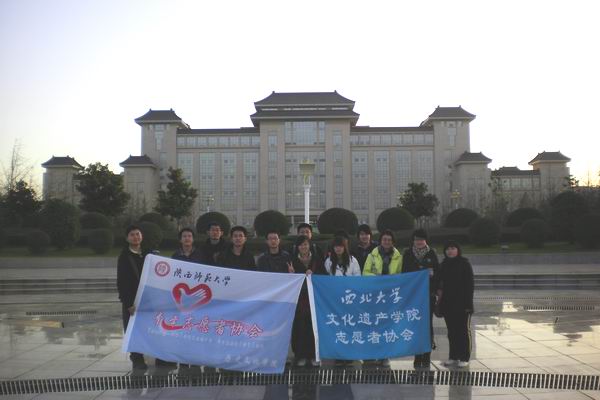 西北大学文化遗产学院志愿者协会成立于2010年9月,其前身是西北大学文博学院青年志愿者队。是在院团委领导下的青年志愿组织,是从事公益事业的服务性、实践性学生团体。经过几级学生的努力和,成为在校内外有相当影响力的大学生志愿者团队。尤其是在西安各大博物馆中的服务,将志愿服务与学院教学相结合,取得了很大的成绩,这些宝贵经验都值得我们认真学习。