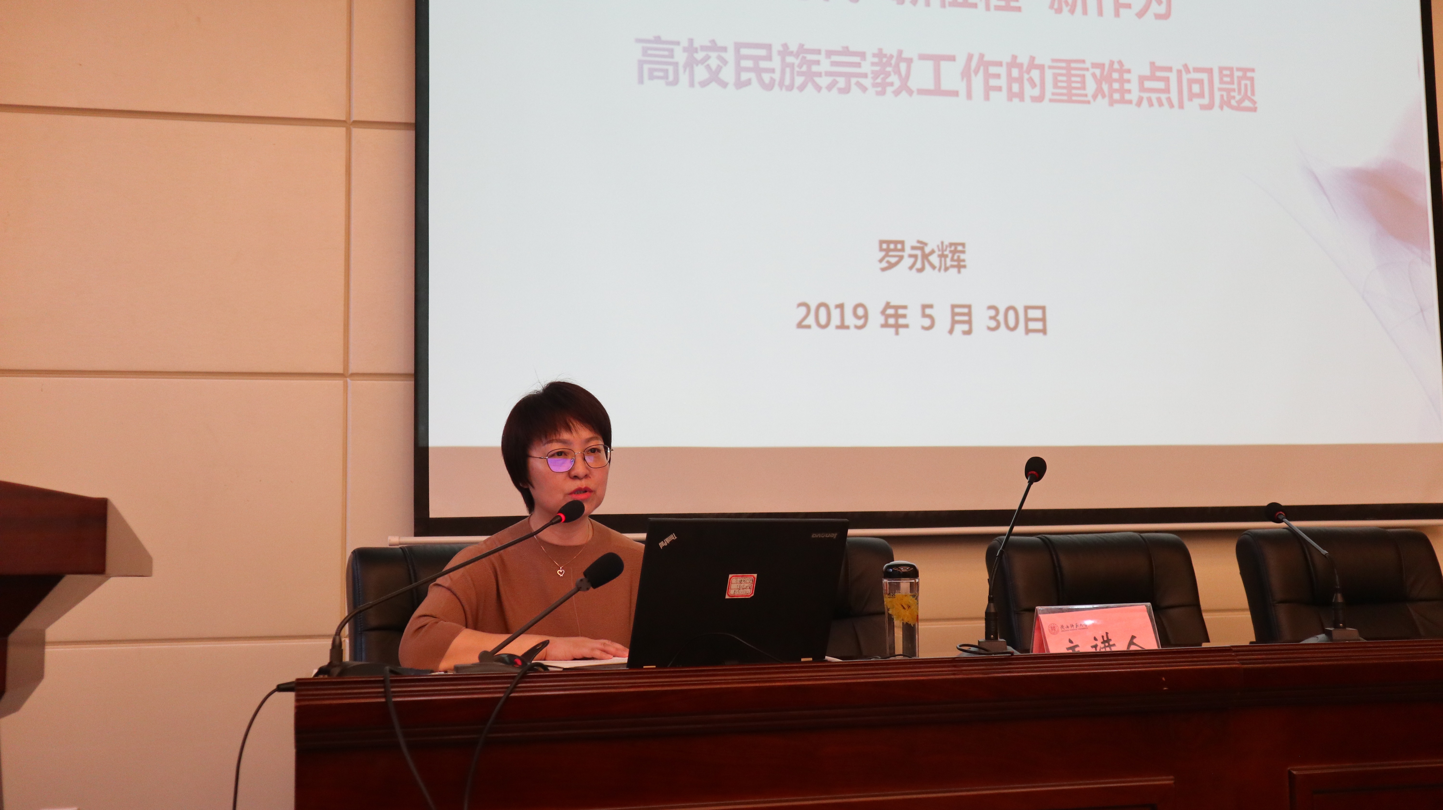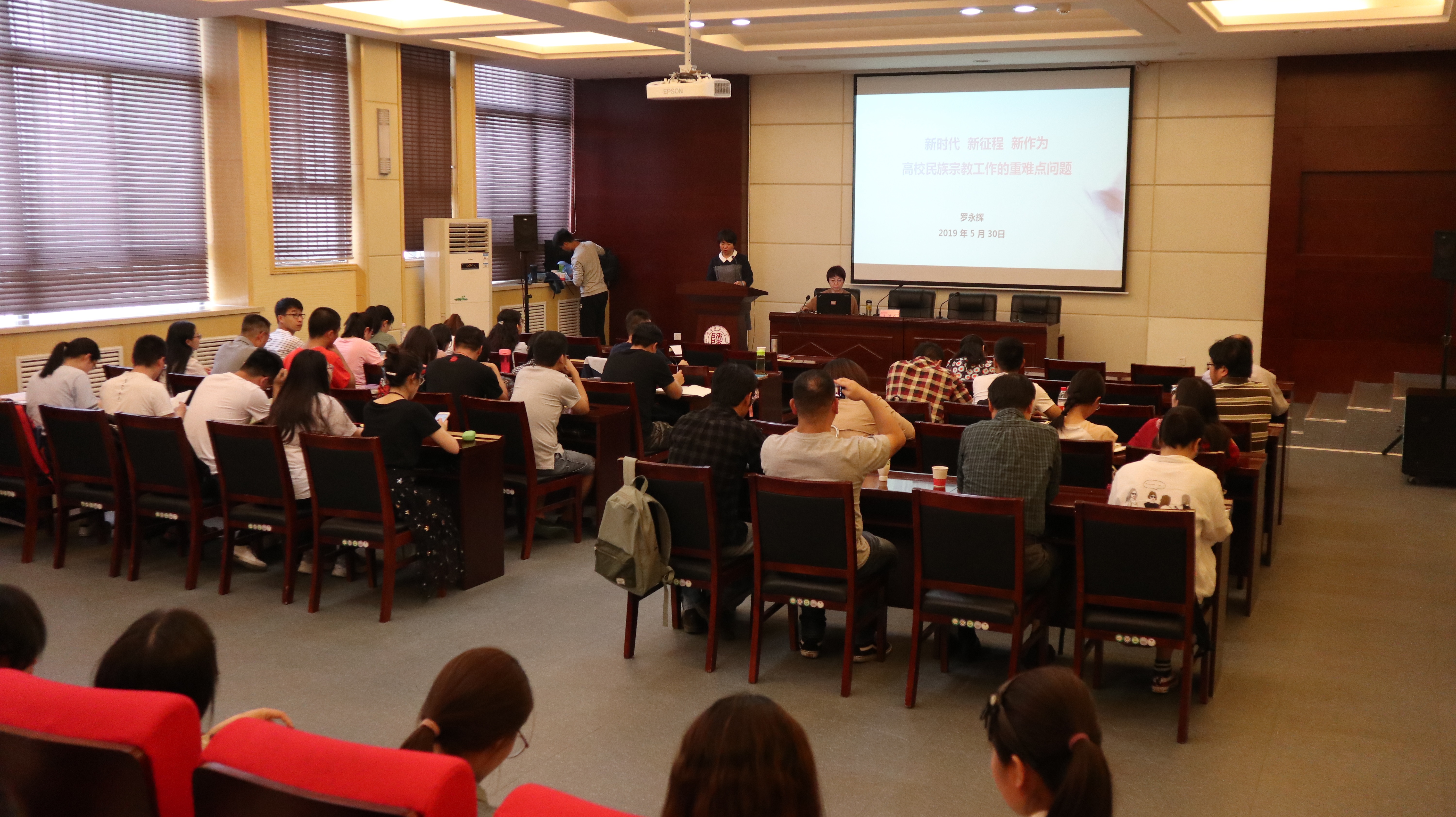 罗永辉部长以“新时代 新征程 新作为——高校民族宗教工作的重难点问题”为题,从多民族的基本国情论、党的领导核心论、各民族多元一体论、民族团结融合论、民族工作关键论、特色道路正确论、增强文化认同论、坚定文化自信论、民族团结交心论、交往交流交融论等十个方面,向大家详细阐述了习近平总书记关于民族工作的新思想、新理念、新战略。