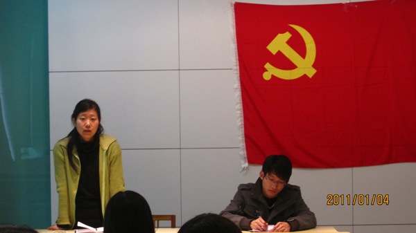 大会最后,支部书记洪海安老师做了总结,对本年度支部工作进行了总结,同时还提出了殷切的希望,首先,洪老师向八位预备党员同志表示祝贺,希望他们在以后的生活、学习、工作中能切实发挥党员的先进带头作用,做一名合格的、优秀的共产党员。其次,肯定了党支部这一学期所取得的一些成绩,并对党支部工作和工作方法上进一步提出了要求,并要求在新的一年中应该开展丰富多彩的生活会,更好的发挥作用。最后,对党员提出了一些要求。要求每个党员要踏实加强对我党政治理论的学习,并真正落实到实践中。大会在热烈掌声中结束。