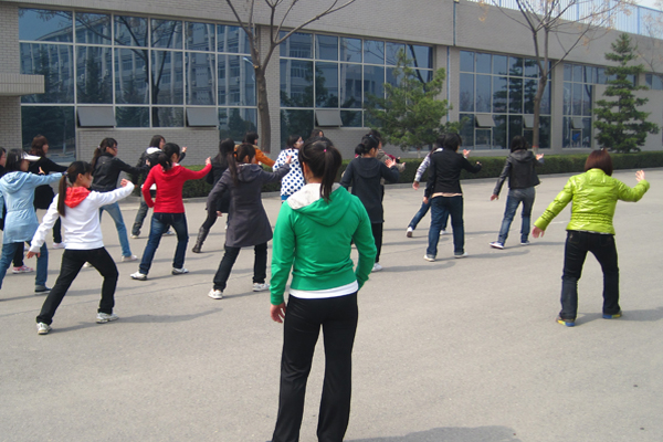 动员会结束后,同学们便投入到紧张的训练中。在教练的精心指导下,大家仔细学习动作和技术要领,反复钻研和练习。参赛同学们认真的态度和团结互助的精神深深感染了在场的老师和学生干部。2008级辅导员洪海安老师也对大家的认真训练表示了肯定。