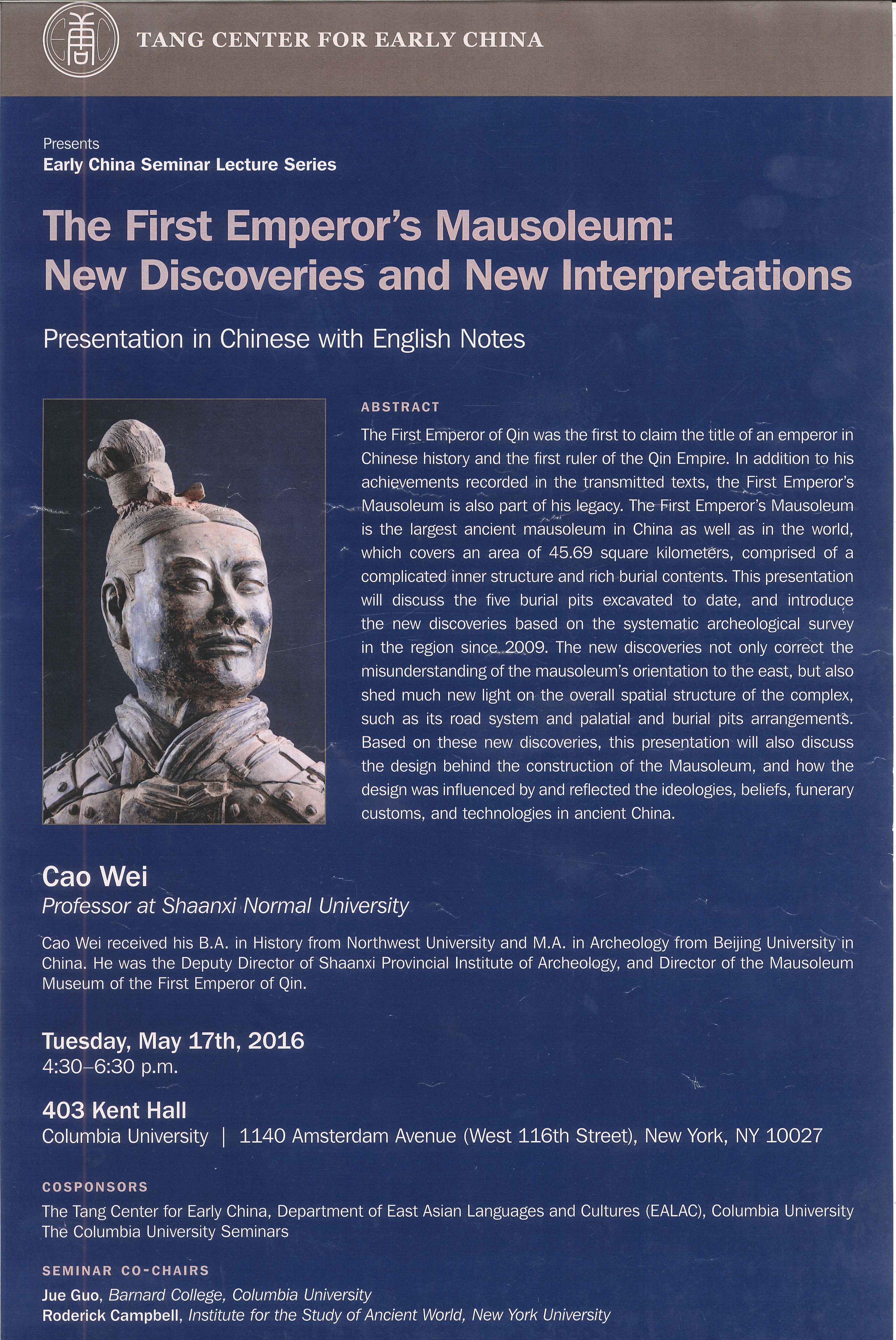 美国哥伦比亚大学是世界著名大学,在美国排在前五位。5月17-19日,受李峰教授邀请,曹玮教授访问了美国哥伦比亚大学东亚语言和文化系,并做了《秦始皇帝陵:新发现和新思考》的演讲,哥伦比亚大学东亚语言和文化系的老师、学生、大都会博物馆的有关学者以及对中国有兴趣的人员聆听了讲座。曹玮教授对来听讲座的学者表示感谢,并一一回答了大家的提问。会后,参观了美国著名的大都会博物馆。