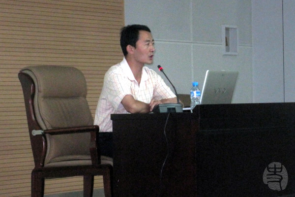 随后,进行会议第二项,由学院团委书记柴永昌老师进行讲话。柴老师首先回顾了2008级团委学生会在任一年,即2010-2011学年,所开展的各项团学工作;对他们的工作表示肯定,并赞扬了他们工作所取得的突出成绩。此后,柴老师还提出在丰富第二课堂、社团工作、文体活动、网络宣传等方面工作上存在的问题和不足,希望2009级同学能够积极参加学生会的竞聘,进而组建一支优秀的学生干部队伍,继续在“团结、务实、创新、高效”理念的指导下,更好地展开各项团学工作,做出更好的成绩。