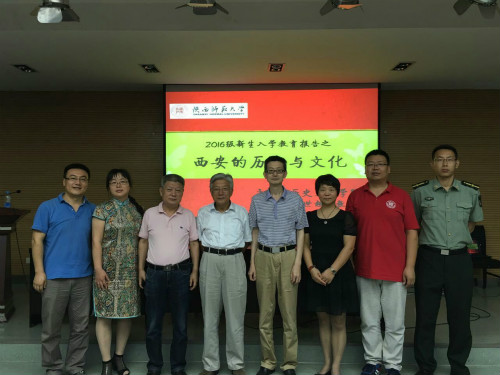 8月17日晚7时,雁塔校区崇鋈楼归仁堂内座无虚席。我校原校长、省社会科学界联合会主席赵世超教授为威尼斯官网2016级全体新同学做了题为《西安的历史与文化》的新生入学教育报告。报告会由院长何志龙教授主持。威尼斯官网王成军、杜海斌、郭妍利、董春生、丁武、王欢等教师聆听了报告。